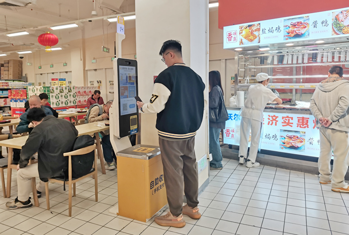 但对于在熟食区准备餐食的店员来说,容易出现人手不足的情况。因此,超市熟食区可以安装设置自助点餐机,让顾客直接在自助点餐机|、自助点单机或触屏自助点餐机上自助下单和支付结账,就能快捷结算,无需通过店员下单确认,也能减少忙中出错的几率,让店员能专心准备菜品,也能提高收银效率和减少出错。