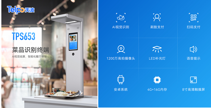 天波智慧食堂菜品识别自助结算台产品详情:http://xls.telpo.cn/xinlingshouwangzhan/184.html