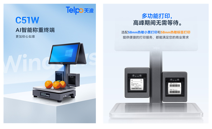 广东天波AI收银称重一体机产品详情:https://xls.telpo.cn/cash-register-machine/C51W
