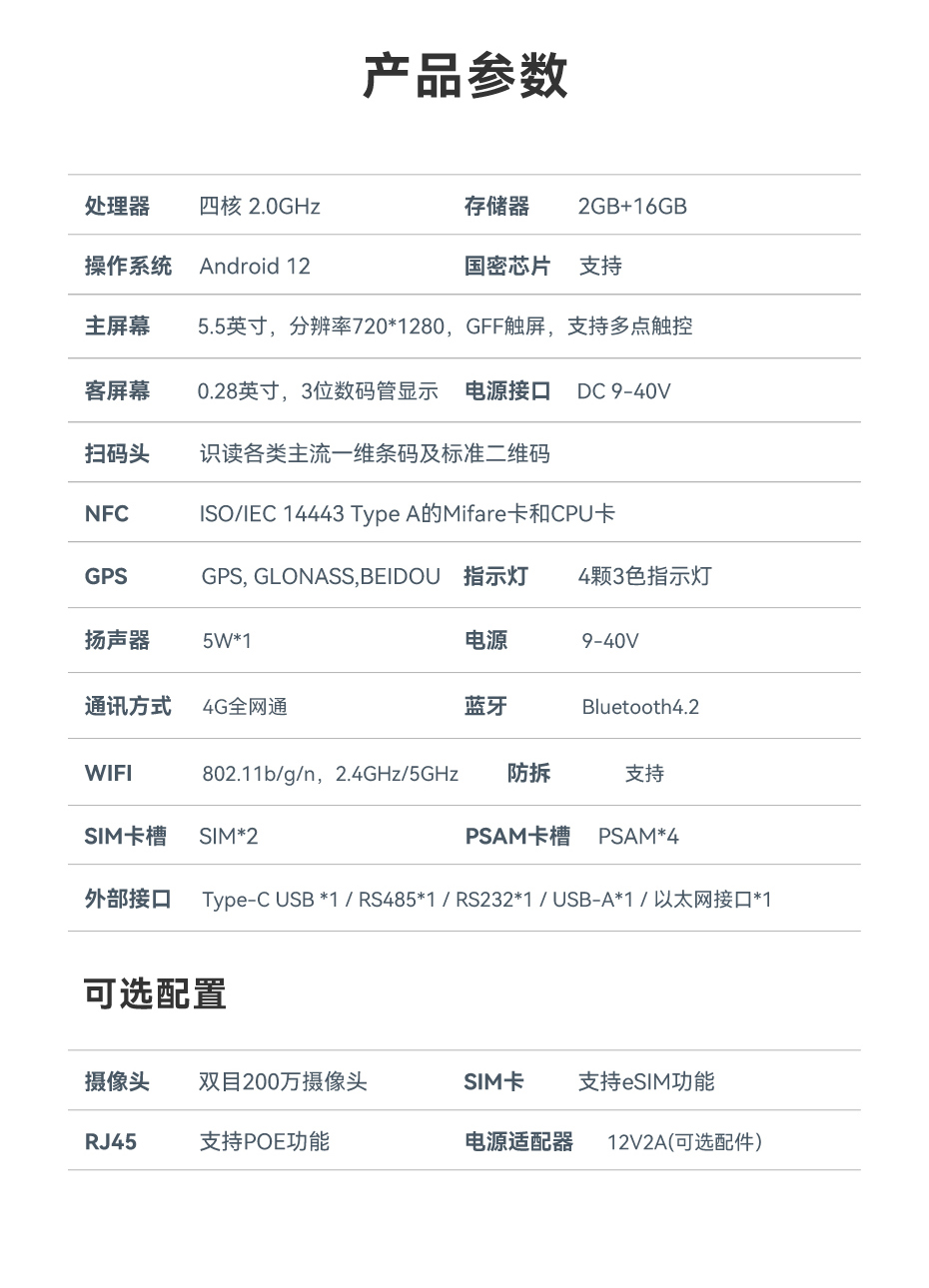 车载收费终端T10采用卓越的处理性能,运行安卓12操作系统,采用工业级主板方案设计,板载工业级芯片组,四核CPU,2GB+16GB性能稳定,提供SDK接口,支持二次开发,为企业数字化转型,智能硬件方面提供有力支撑,更好地推动企业降本提质增效。